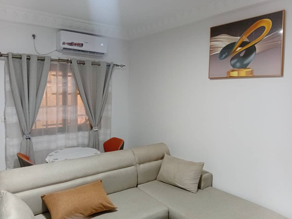 Cette résidence meublée est idéalement située à Yamoussoukro au quartier Sopim, dans un quartier calme et accessible. Le studio offre un espace bien aménagé et confortable, parfaitement adapté pour des séjours de courte ou moyenne durée. Il comprend une chambre cosy, une cuisine équipée pour préparer vos repas ainsi qu’une salle de bain moderne. Vous profiterez également d’une connexion Wi-Fi, d’une télévision connectée et de la climatisation pour garantir un séjour agréable et serein. Grâce à son emplacement stratégique, proche des commodités essentielles, cette résidence constitue un excellent choix pour vos séjours personnels ou professionnels à Yamoussoukro.