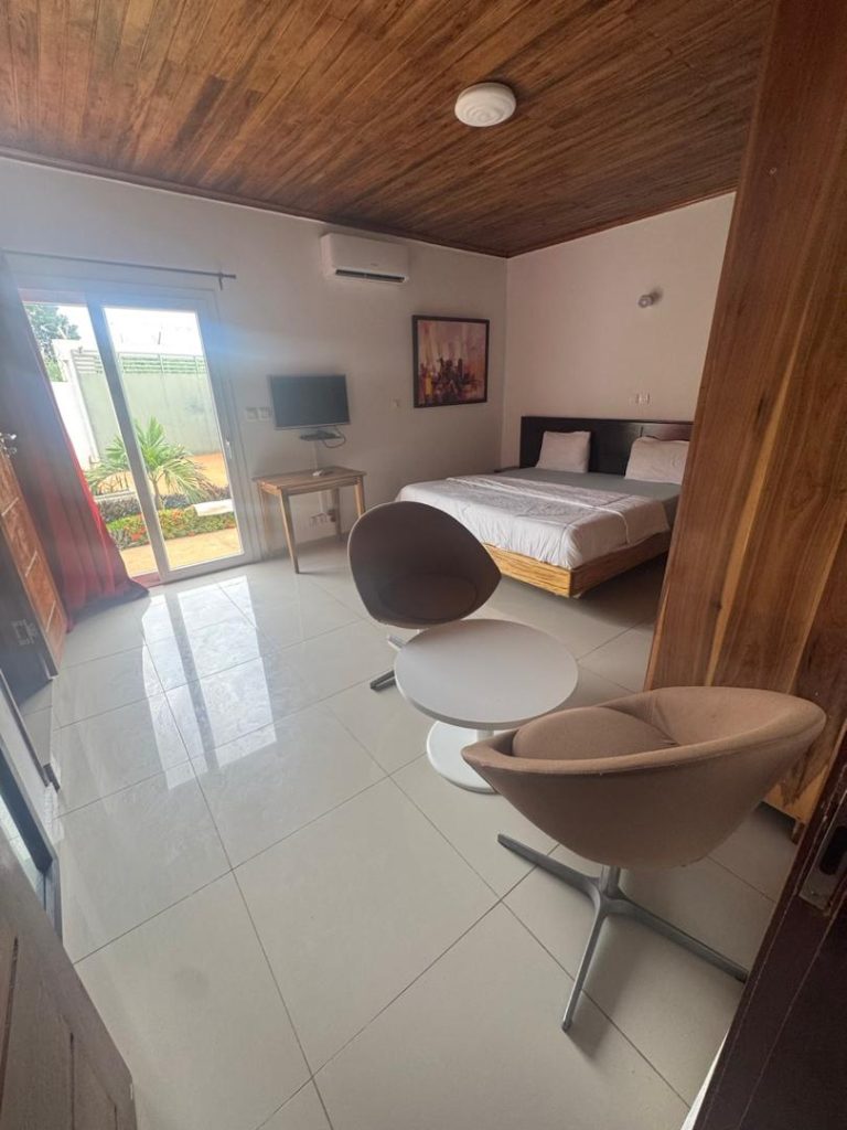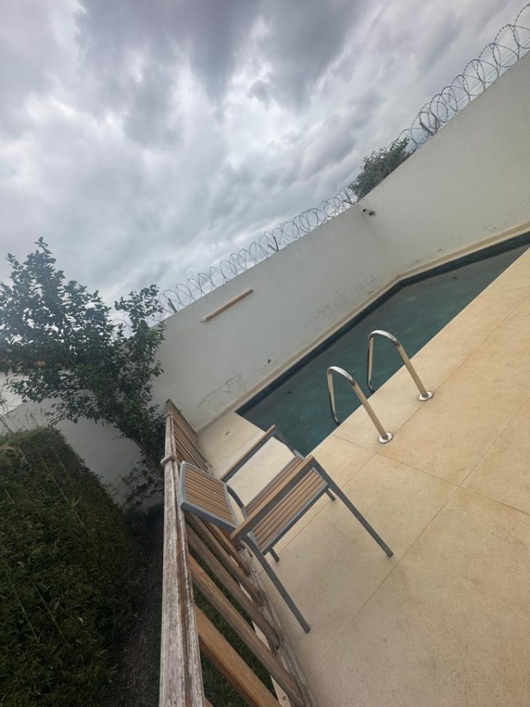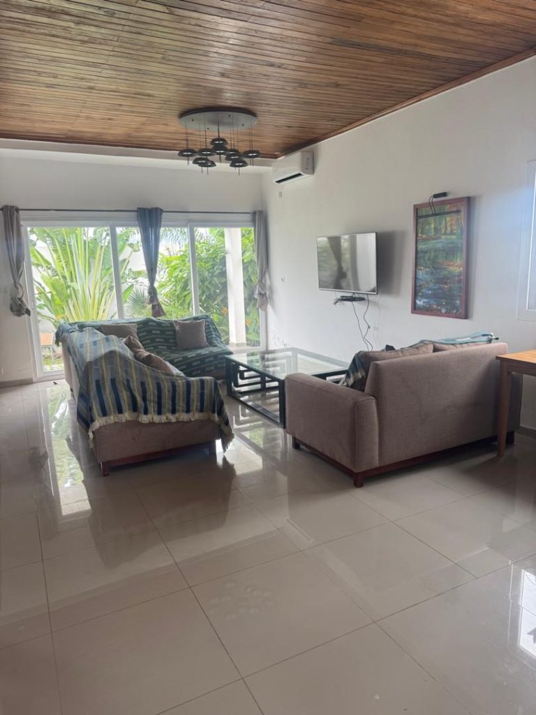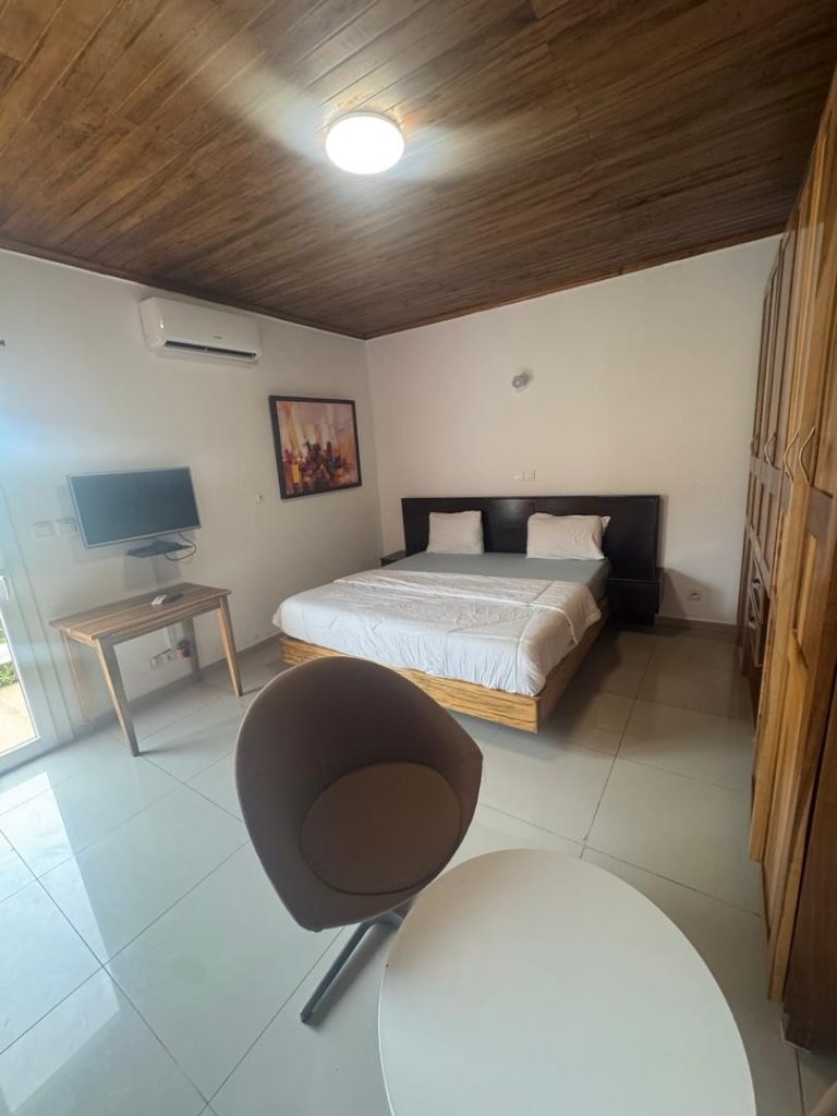 Résidence meublée de 5 pièces avec piscine située à Yamoussoukro M Lok Ambassade derrière le Stade de Yamoussoukro, dans un environnement calme, sécurisé et facilement accessible. Elle est composée d’une Piscine , d’un salon, de quatre belles chambres confortables et d’une cuisine équipée et fonctionnelle ainsi que d’une salle d’eau moderne. La résidence est entièrement meublée, climatisée et dispose des commodités essentielles telles que l’eau, l’électricité et une connexion Wi-Fi. Idéale pour les courts et longs séjours, elle convient aussi bien aux particuliers qu’aux professionnels recherchant confort et praticité.